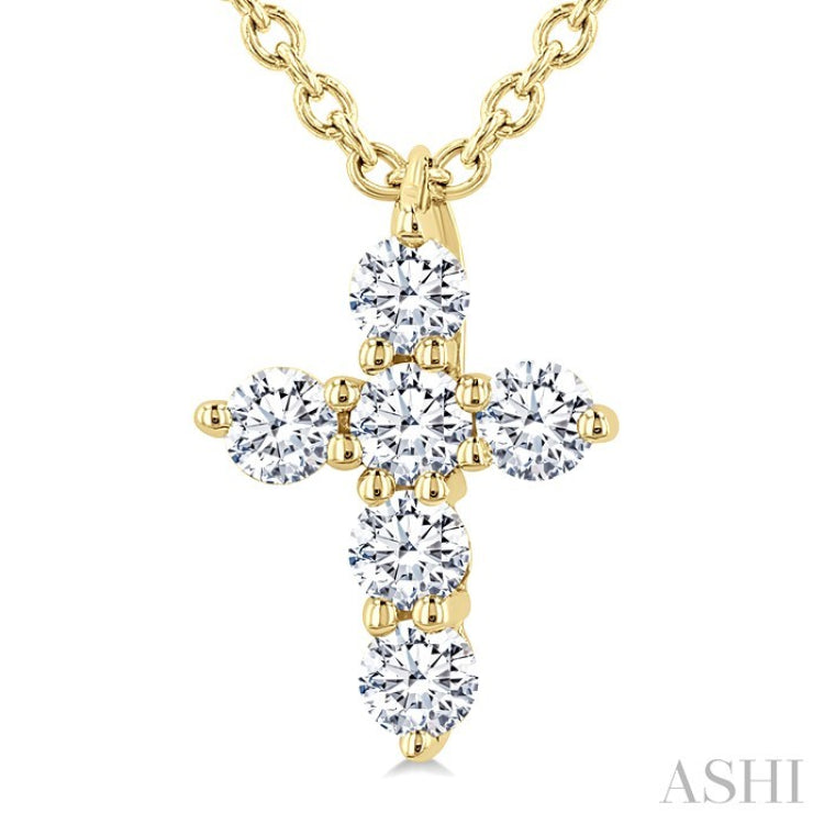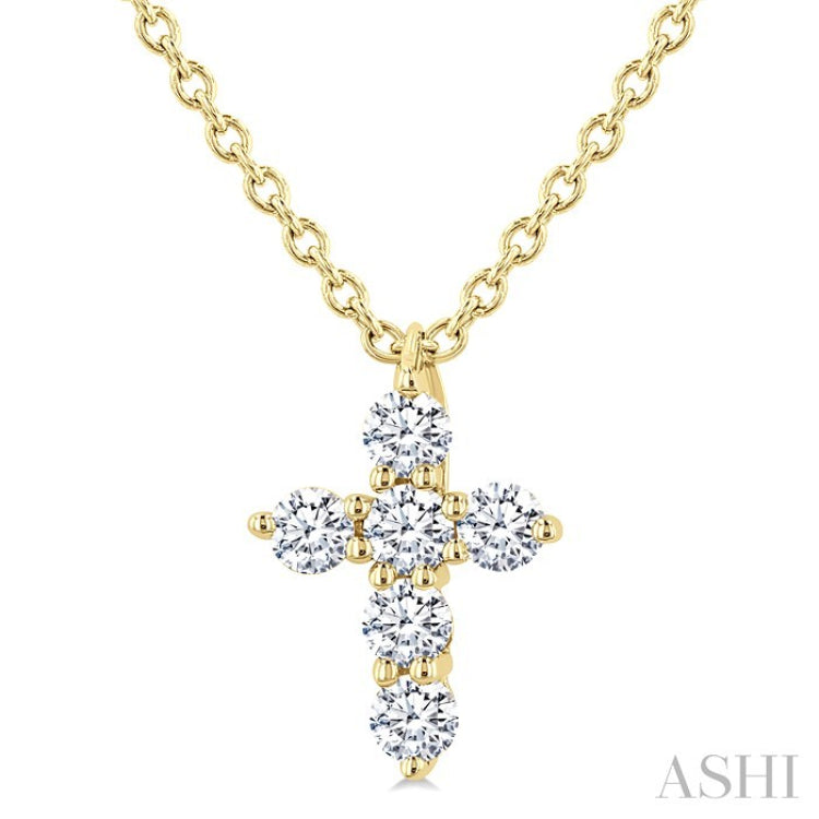 1/6 Ctw Round Cut Diamond Christian Cross 6-Stone Fashion Pendant With Chain in 14K Yellow Gold
