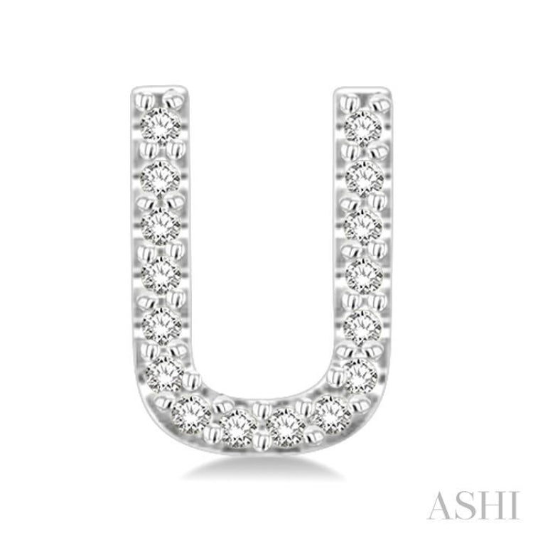 1/10 Ctw Initial 'U' Round Cut Diamond Earrings in 10K White Gold