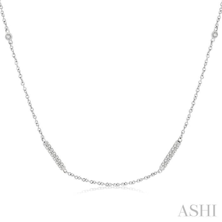 1/2 Ctw Bar and Circular Mount Round Cut Diamond Station Necklace in 14K White Gold